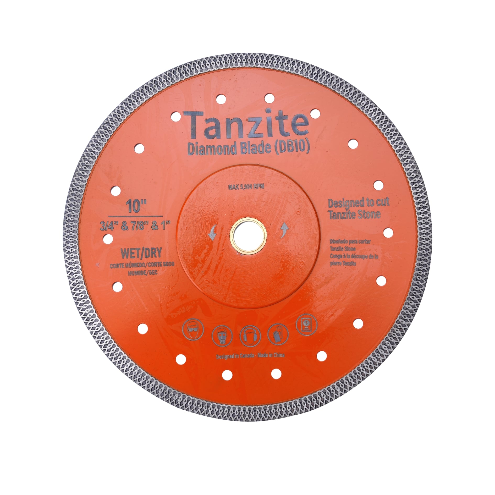 254 mm (10 Zoll). Geeignet für die meisten Fliesensägen und handgeführten Winkelschleifer mit 3/4'', 7/8'' und 10'' Aufnahme.