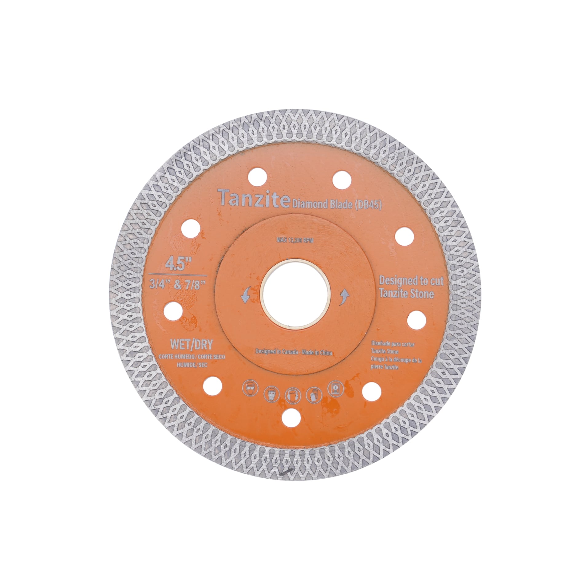Außendurchmesser: 115 mm (4,5 Zoll). Geeignet für die meisten Fliesensägen und handgeführten Winkelschleifer mit 3/4'' und 7/8'' Aufnahme.